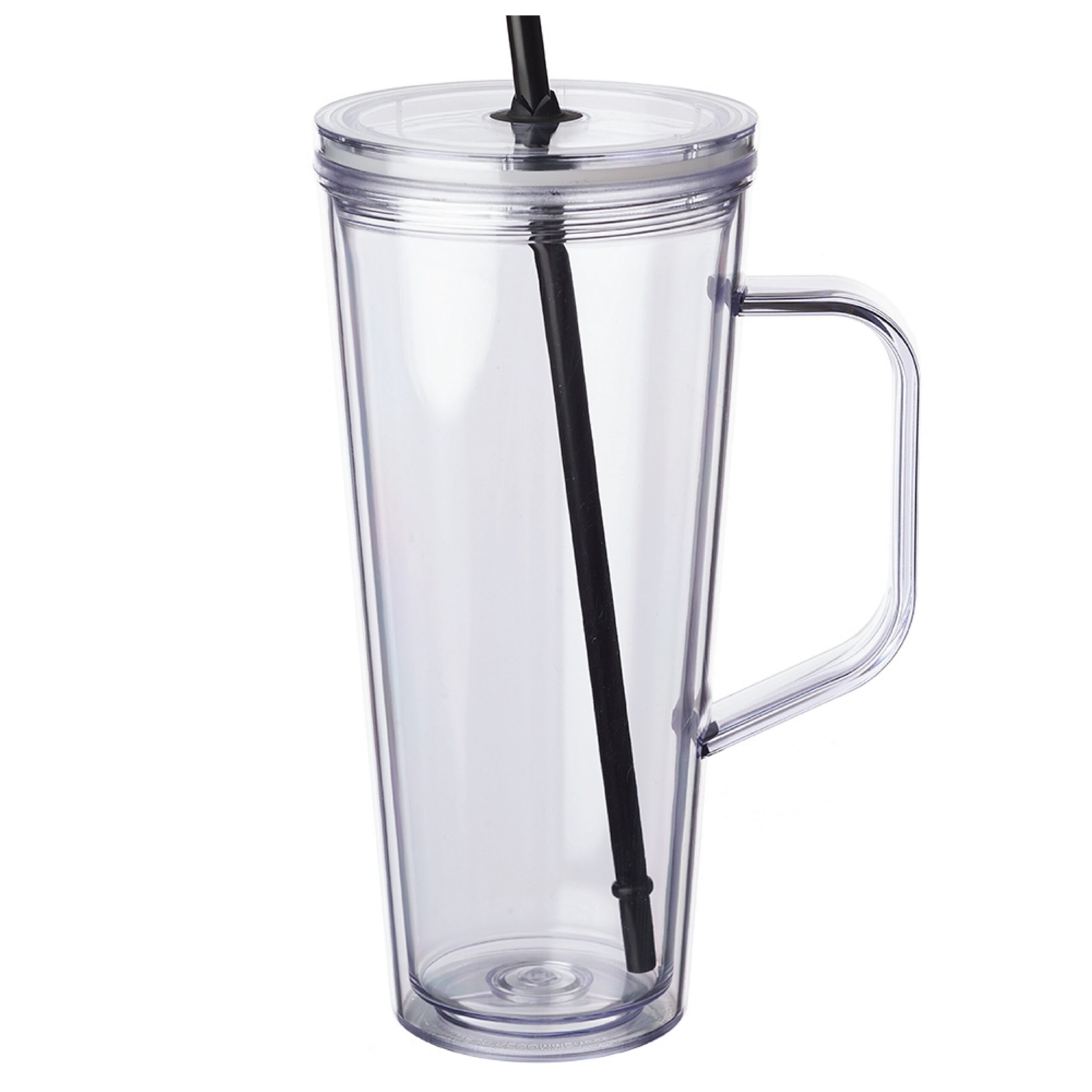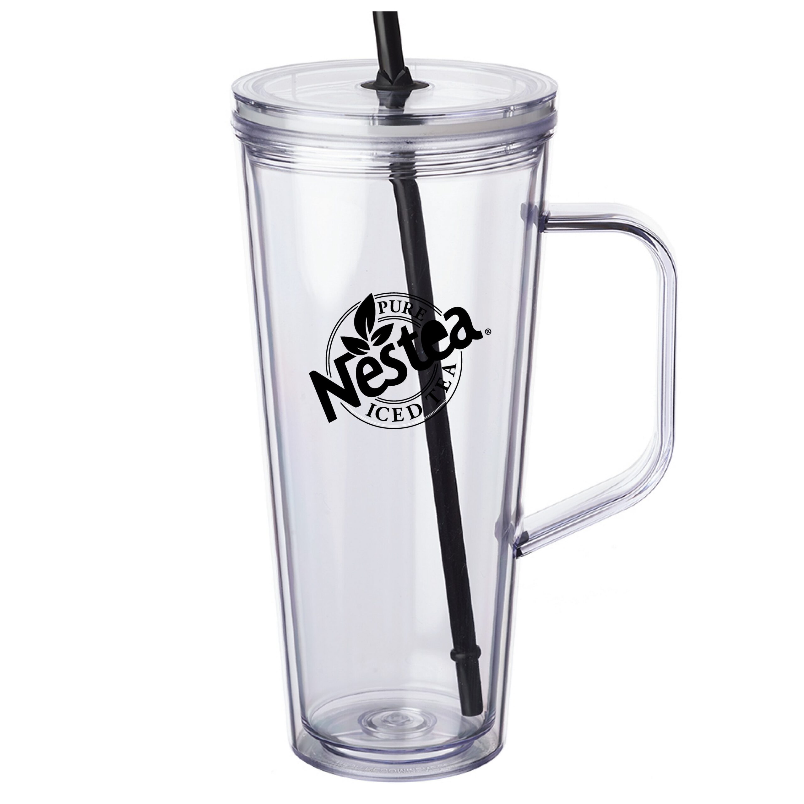 Introducing the generous 24oz Mia Double Wall Plastic Mug. Features a screw-in lid and a matching color silicone spout for the matching color straw! Perfect for all your on the go activities! 8″ H x 3.75″ W