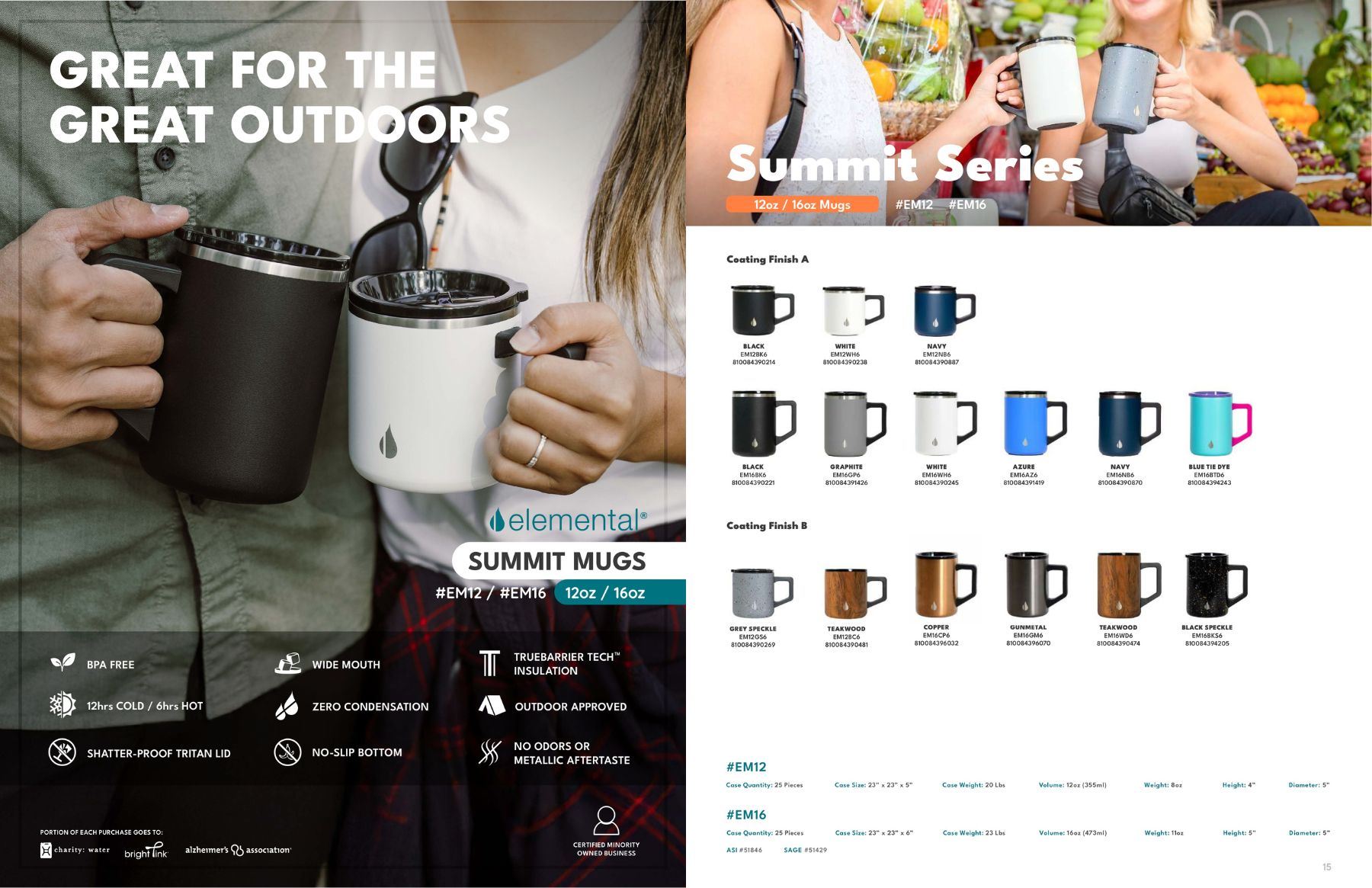 Elemental Insulated Summit Mug your rugged companion for outdoor adventures. Crafted with a lightweight design and triple-wall insulation, this mug keeps your drinks hot for up to 6 hours and cold for up to 12 hours, ensuring you stay refreshed throughout your hike or camping trip. With True-Barrier technology, it remains free from condensation, while the shatterproof Tritan lid guarantees durability on the trail. Complete with a comfortable handle for easy carrying, this mug is the perfect choice for trekking through the wilderness or enjoying a scenic picnic. Complies with FDA, Food Grade, Prop 65. 5″ Diameter x 5″ H